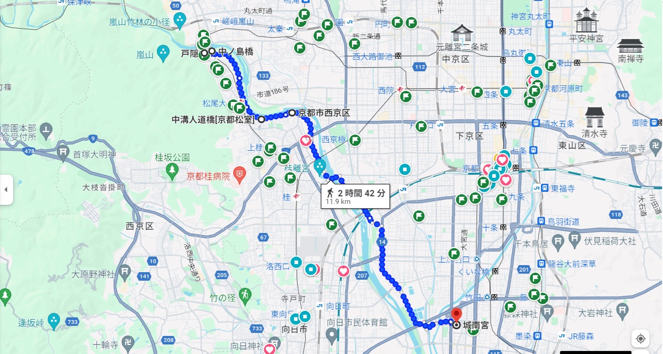 で、手始めに嵐山方面に自転車を持って出かけてみました。